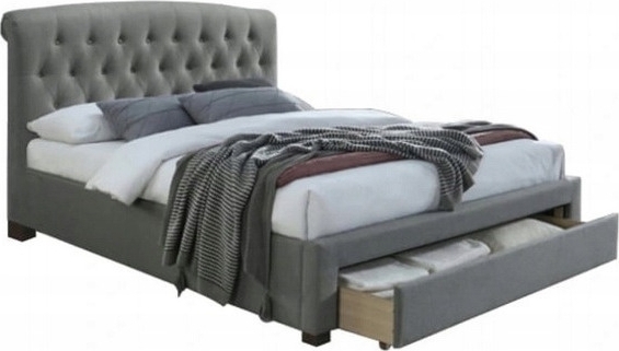 En herlig seng med moderne design. Sengen er tilvirket av solid tre og kledd med et veldig behagelig stoff for maksimal komfort. Sengen er i tillegg utstyrt med en skuff i enden for smart oppbevaring av for eksempel sengskinn. Ribben er inkludert.