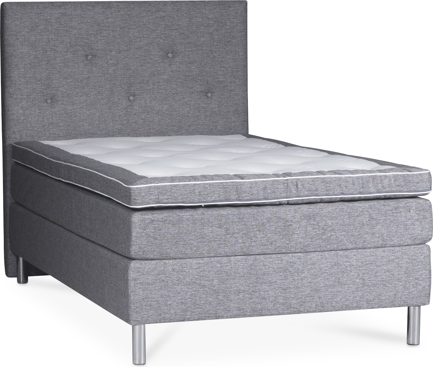 Sengen er oppbygd med 1 st 90/120/140 cm bred sengebunn. Sengebunn er bygd i 8 cm massiv treramme i fingerkarvet furutre, kledd i slitesterkt tøy. Bunnen er oppbygd av et kraftig bonell fjæringsystem. Mellommadrassen består av et 5-soners pocketspring system med valgfri fasthet for å få den liggekomforten som ønskes. Hver Pocketfjær er separat innkapslet for å arbeide individuelt og gi en så behagelig komfort som mulig.