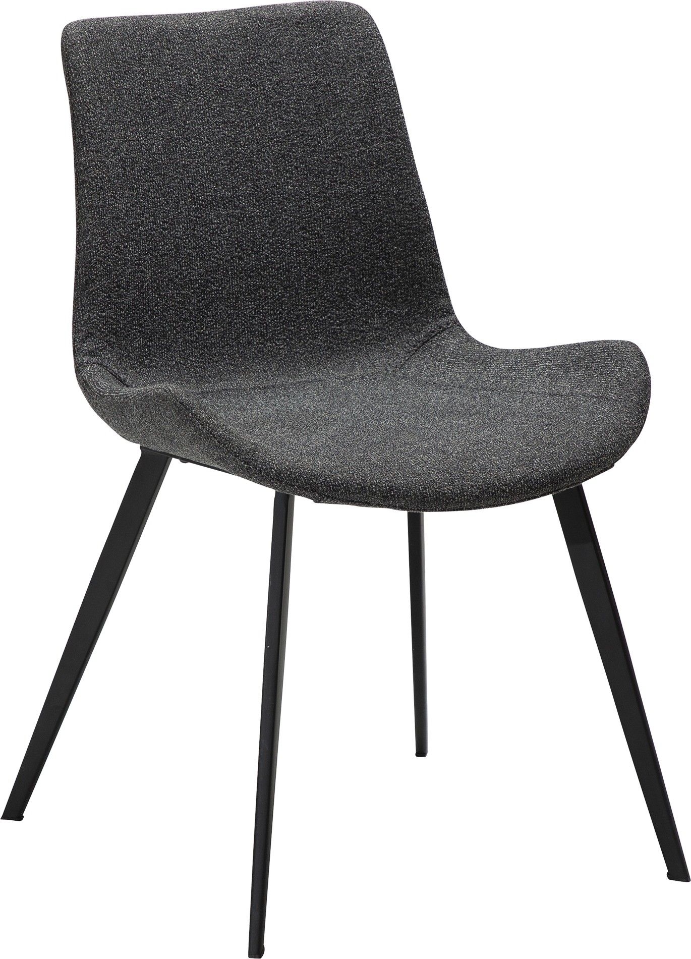 Stilig spisestuestol med et bollete og komfortabelt sete som er dekket med et stilig og elegant bouclestoff. Bena er laget av sortlakkert metall. Dette er stolen for deg som ønsker en tradisjonell spisestol med moderne linjer og god komfort kombinert med en solid konstruksjon.