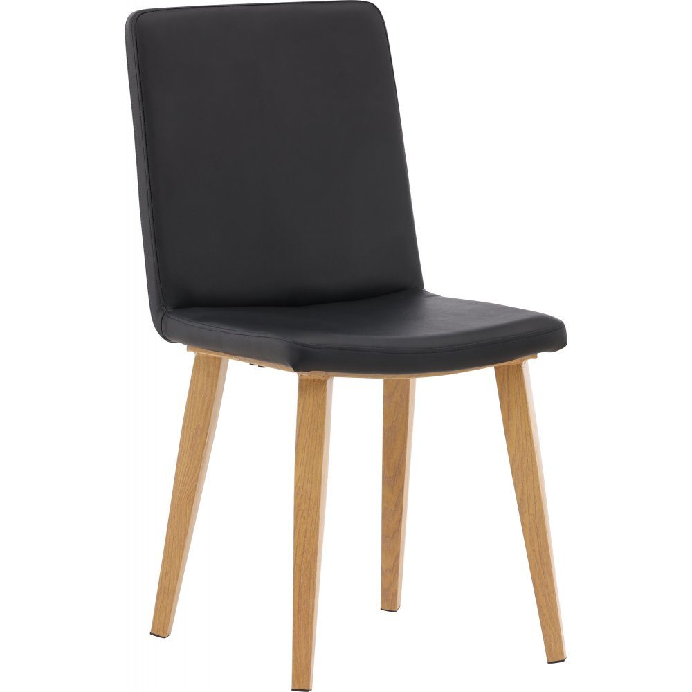 Klassisk spisestuestol med rette nordiske former og cocky helpolstret sete i sort kunstskinn. Stolbena er lett utsvinget i naturlig tre og gir et solid inntrykk. Det gjennomtenkte helhetsdesignet er like moderne som det er tidløst. Match med et stilig spisebord og du vil ha en komplett spisegruppe for dine hyggelige måltider i fremtiden!