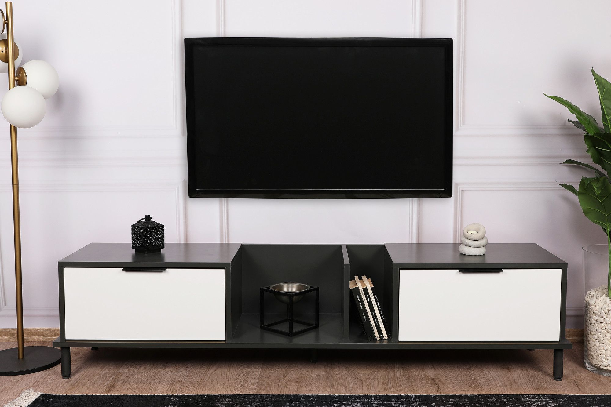 Ibiza mediebenk - Hvit/antrasitt