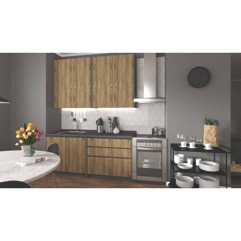 Idé komplett kjøkken 180 cm - Håndverk eik/antrasitt