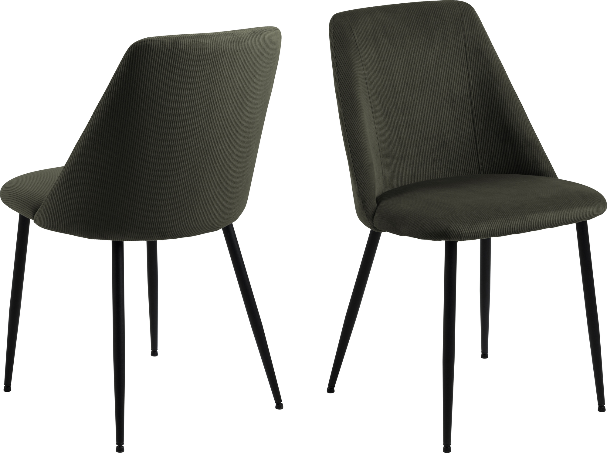 Spisestol med pulverlakkerte metallben og polyestertrekk.