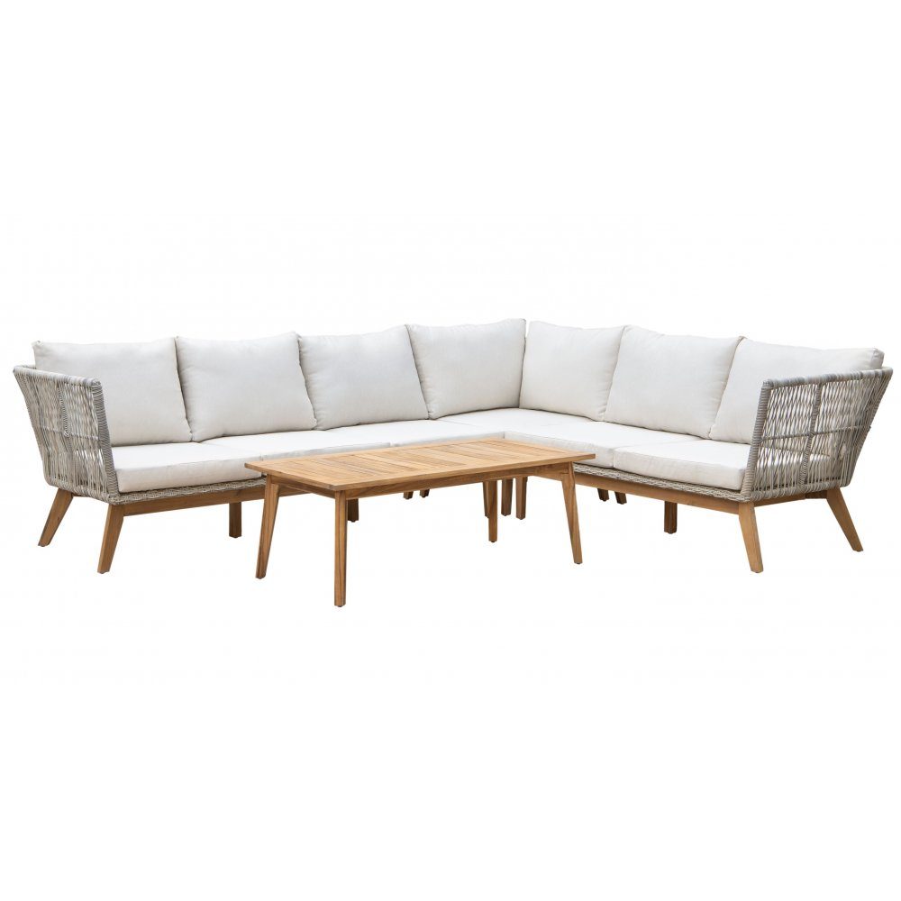 Inez utendørs sofasett med salongbord - Grå syntetisk rotting og akasie | Hjørnesofa