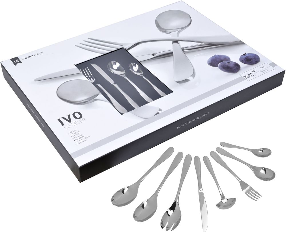 Inneholder 6 kniver, 6 gafler, 6 skjeer og 6 teskjeer.