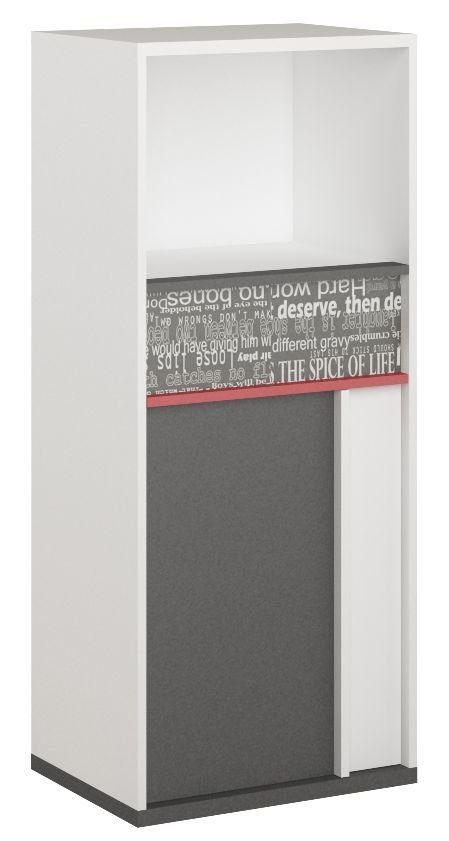 Et fint oppbevaringsskap med moderne design. Produsert i MDF med gode oppbevaringsmuligheter i form av et skap, en skuff og et åpent hylleplan.