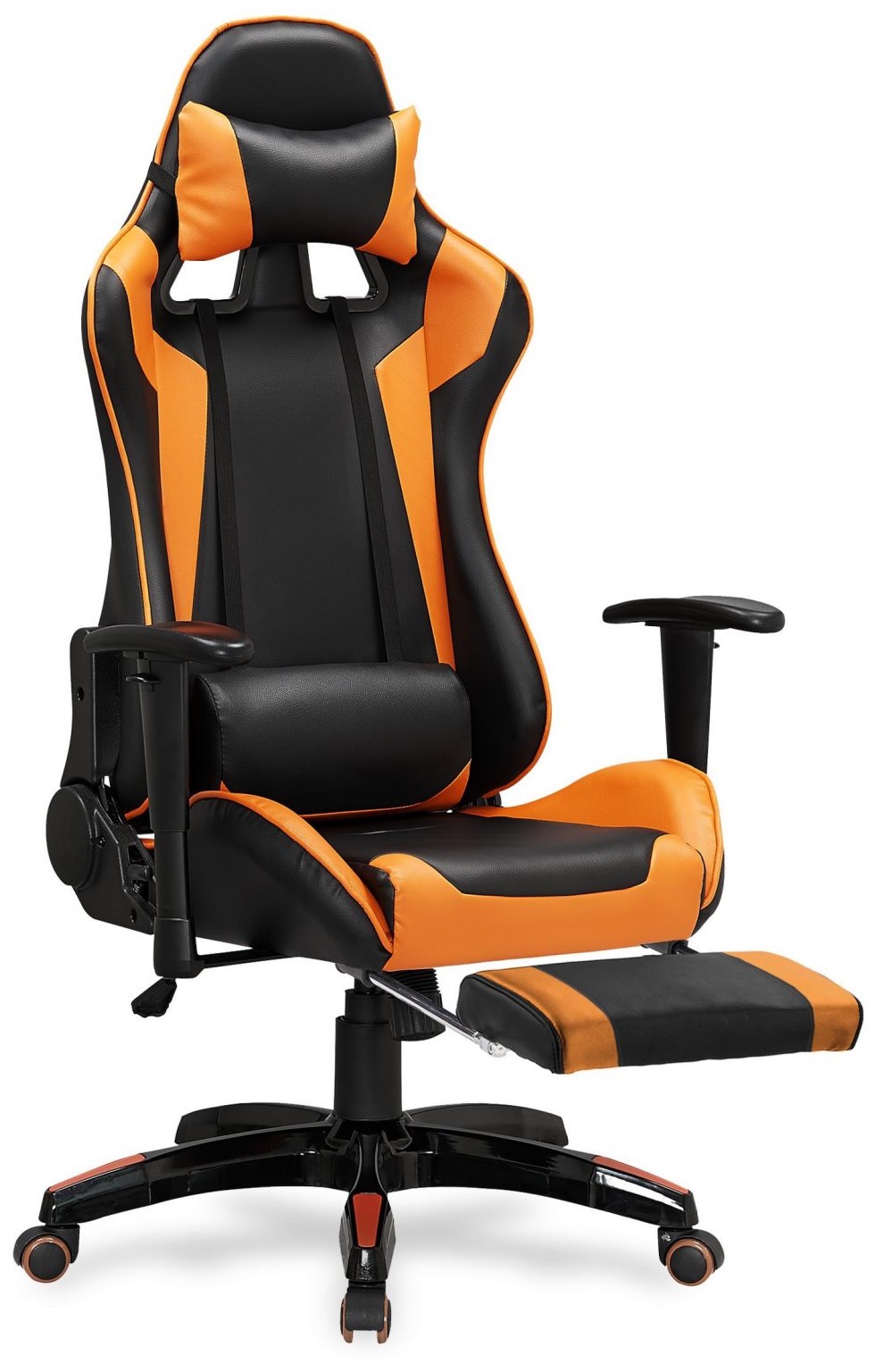 En fin kontorstol med en moderne design. Stolen er kledd med et veldig behagelig kunstskinn for maksimal komfort. Stolen har en beinstøtte som skal skytes inn eller ut, tilt- funksjon i stolen og setets høyde reguleres lett med hjelp av spaken under setet. Stolen er lett å forflytte takket være hjulene under stjernefoten.