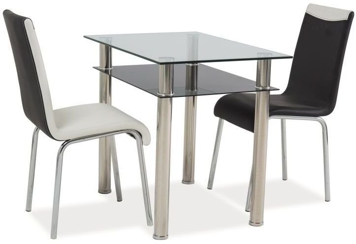 Et nydelig spisebord med moderne design. Understellet er laget av forkrommet metall og bordplaten er laget av herdet glass.