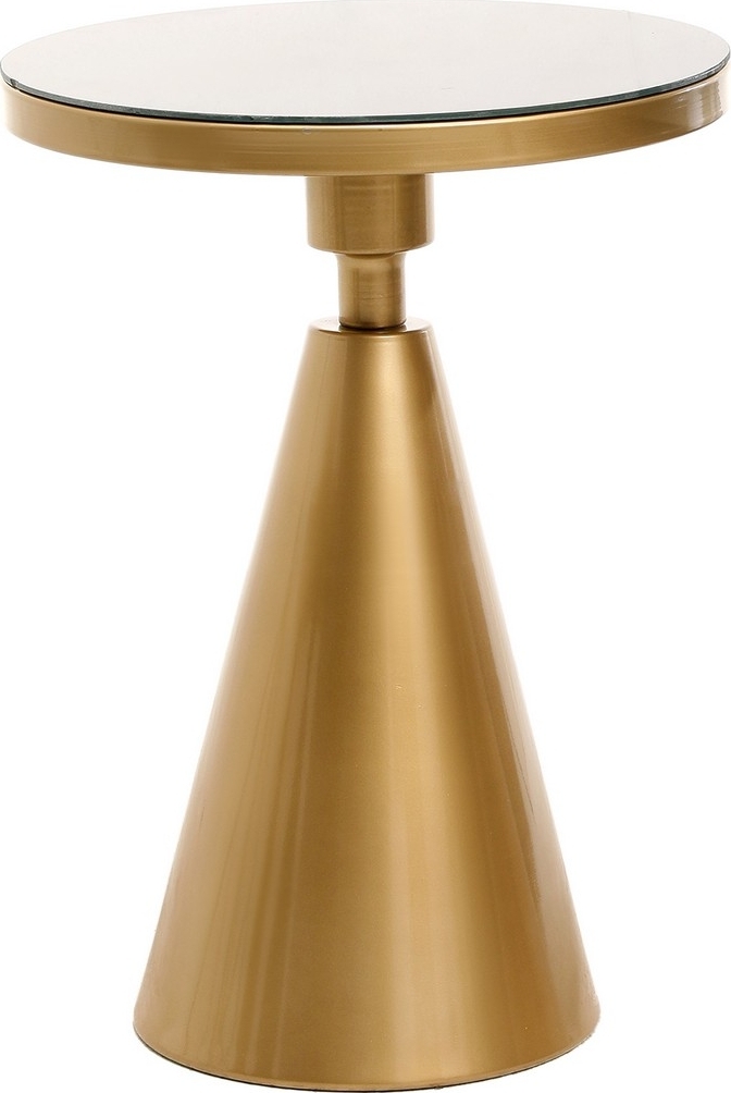 Sidebord laget av metall med bordplate i speilglass malt mørkegrå.