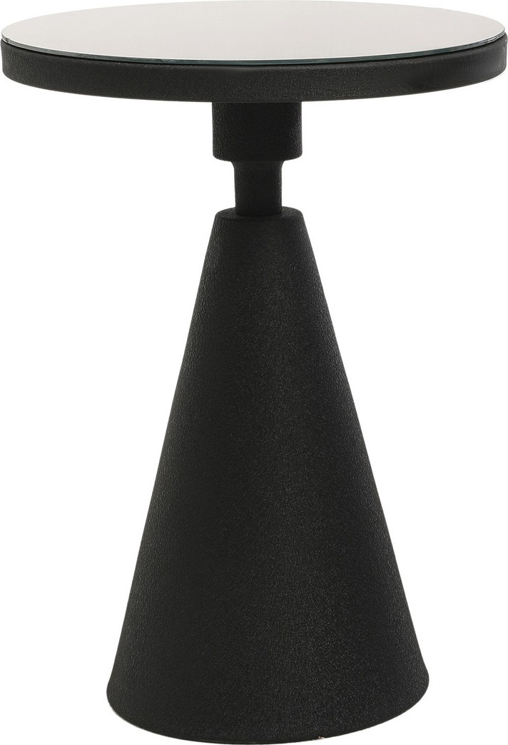 Sidebord laget av metall med bordplate i speilglass malt mørkegrå.