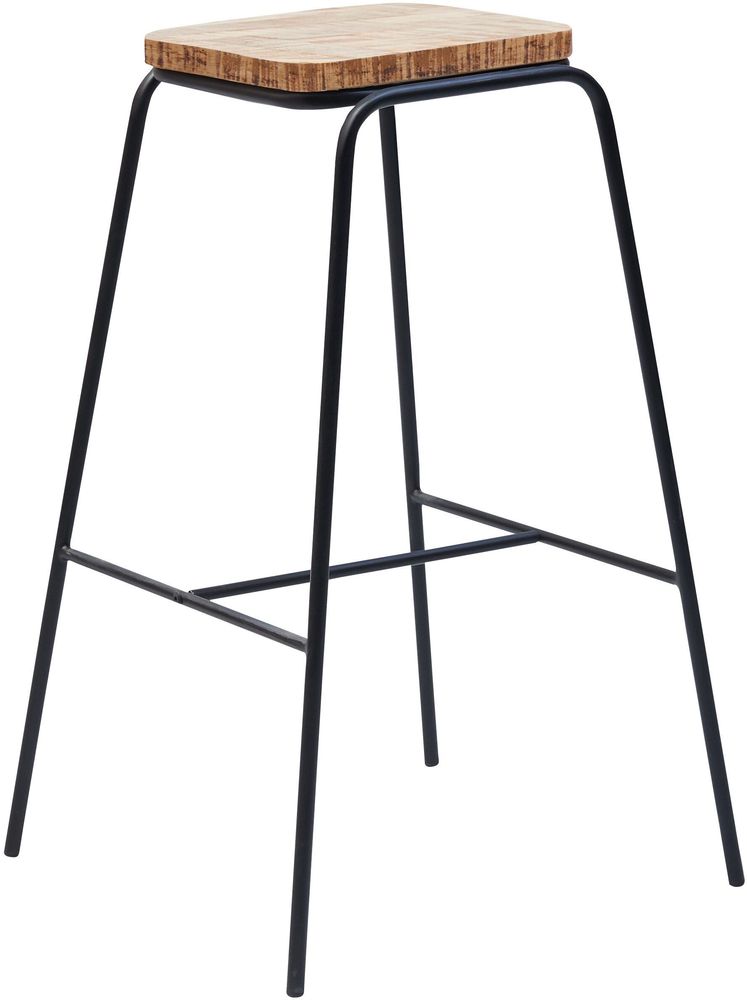 Karin barstol med svart underrede i metall og snygg mönstrad sete av mangotre.