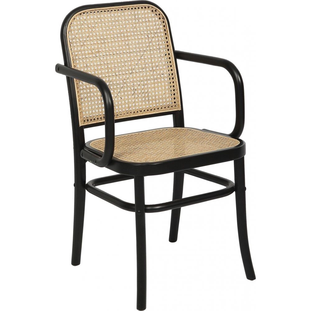 Karlstorp er en gedigen karmstol med lys rotting i både sete og rygg. Laget av svartlakkert massiv alm.