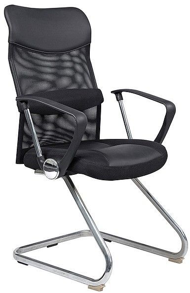 En fin kontorstol med moderne design. Understellet er laget av forkrommet metall og setet er dekket med en blanding av stoff, mesh og kunstskinn.