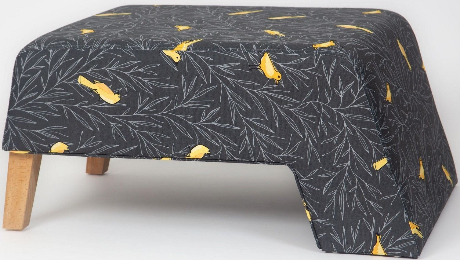 Puff laget av tre med akrylstoff.