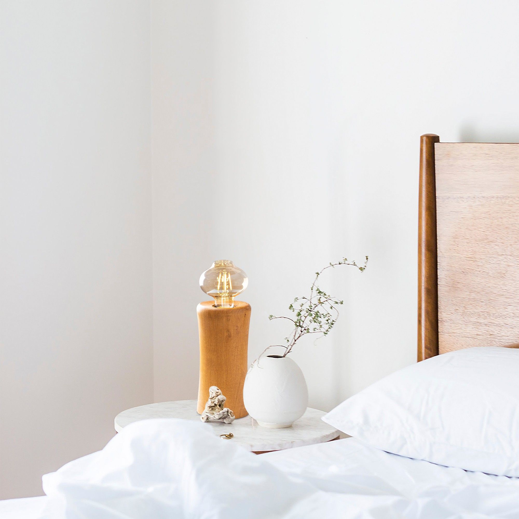 Bordlampe laget av tre. Lyskilde er ikke inkludert.