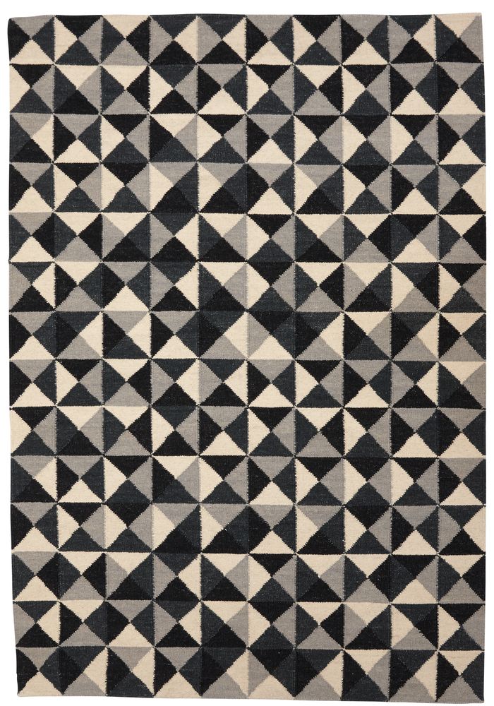 Håndvevd vendbart kelimteppe i ull fra New Zealand.