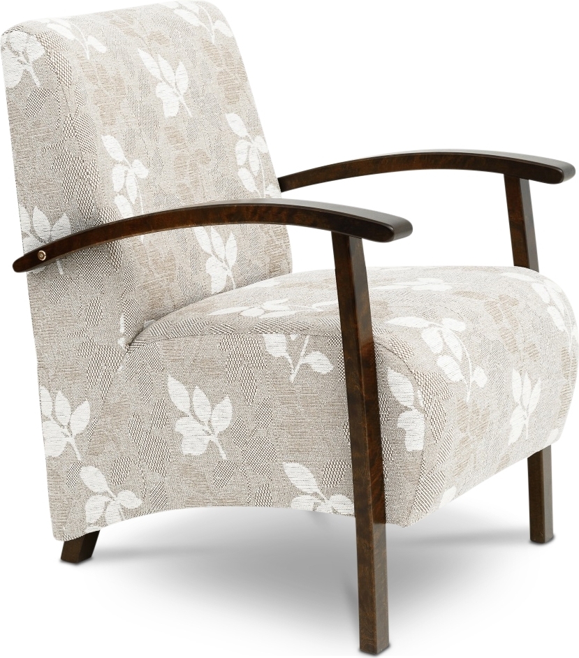 Elegant lenestol med trearmlener i alle farger. Også tilgjengelig i en rekke møbeltrekk. "Farge på ben" refererer til ben og armlener.