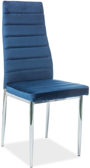 Stol i forkrommet metall. Polstret med polyester i fløyelsimitasjon.