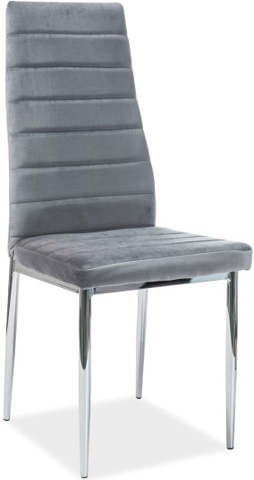 Stol i forkrommet metall. Polstret med polyester i fløyelsimitasjon.