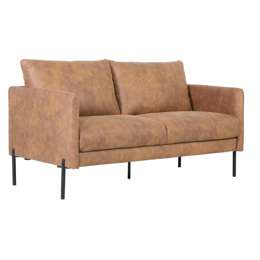 Kingsley er en stilsikker sofa med fine detaljer. Smale høye metallben i svart pulverlakkert metall. Seteputer med kaldskumkjerne og fibervatt for beste sittekomfort og lengste holdbarhet. Smale moderne armlener. Trekk i cognacsfarget øko-lær.