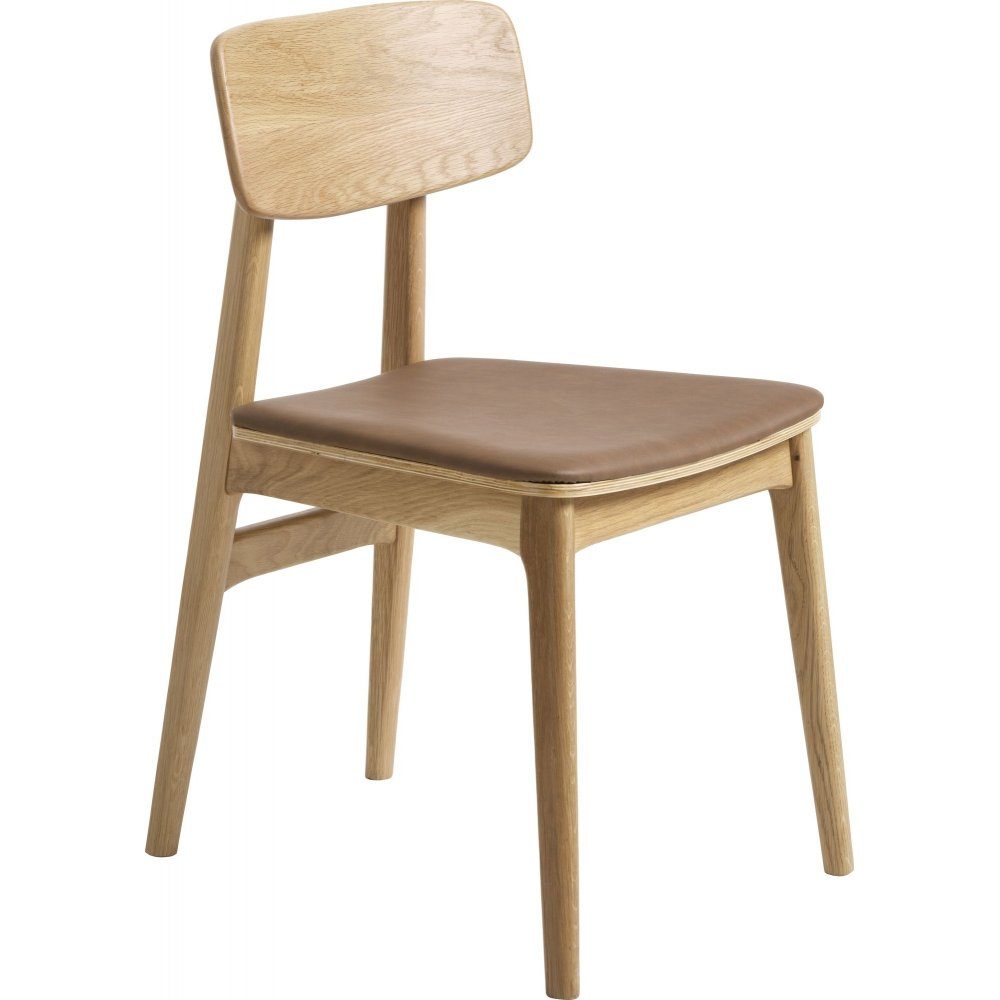 Kleppen er en spisestuestol laget av oljet eik, et naturlig og slitesterkt materiale som fremhever treets vakre årer. Det brune PU-setet gir både komfort og et elegant utseende, samtidig som materialet er praktisk og enkelt å rengjøre.
