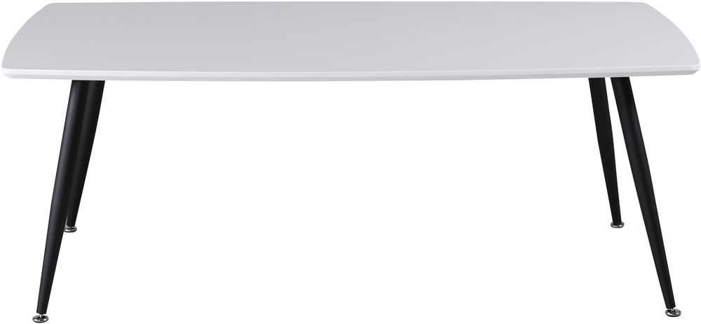 Salongbord med topplate av hvit MDF og metallben av svart metall.