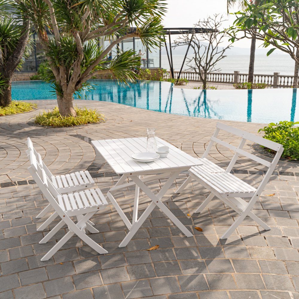 Spisebord i klassisk utførelse i hvitlasert tre, passer bra inn på de fleste uteplasser.