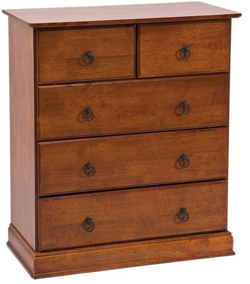 En stilig kommode med et klassisk design. Kommoden er produsert i tre med en meget vakker finér med antikk kirsebærutførelse, og med detaljer i metall. Utrustet med 5 skuffer for oppbevaring av for eksempel klær.