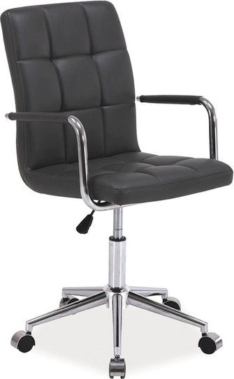 En herlig kontorstol med et moderne design. Understellet er produsert av krommet metall og setet er trukket med et veldig behagelig kunstlær for maksimal komfort. Høyden på setet kan enkelt justeres ved å bruke spaken under setet. Stolen er også lett flyttbar takket være hjulene på stjernefoten.