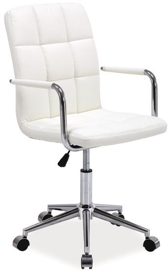 En koselig kontorstol med et moderne design. Basen er produsert av krommet metall och setet er kledd med et meget behagelig kunstlær for maksimal komfort. Sittehøyden er enkel å justere ved hjelp av spaken under setet. Stolen er også enkel å flytte, takket være hjulene på stjernefoten.