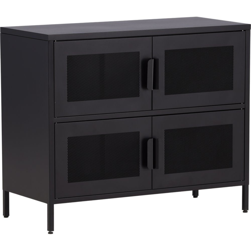 Innrede hjemmet smart og stilig med et praktisk oppbevaringsskap fra Krado-serien i deilig industridesign. Dette skapet er laget av sort stål med nettingdører som blir en smakfull detalj for øyet. Skapet har to hyller med fire dører som skaper god plass til halvskjult oppbevaring. Dybden på skapet gir et robust inntrykk og egner seg perfekt til avlastning selv på topplate - dekorer med dekorasjoner og skap et blikkfang som imponerer. De smale, høye bena som løfter skapet opp skaper en luftig følelse og gjør det også lettere for støvsugeren. Nyt smarte møbler.