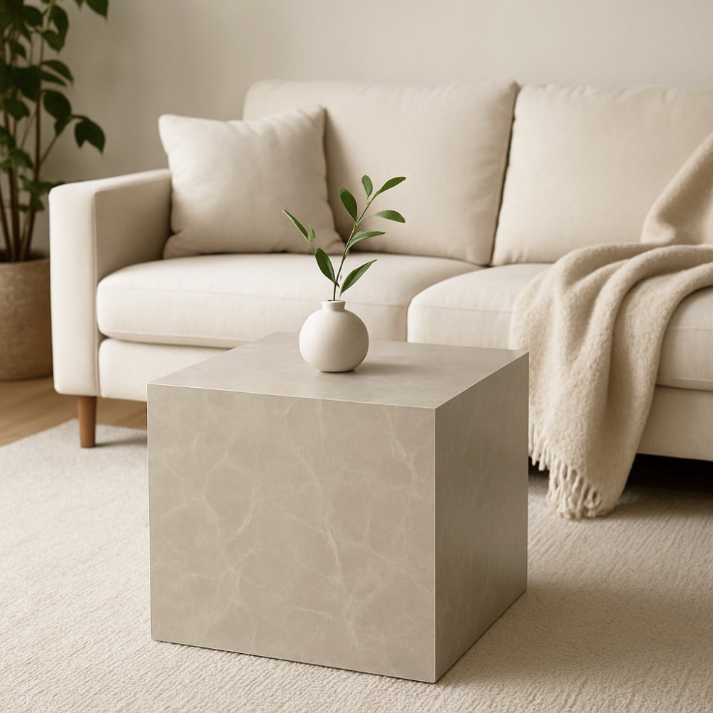 Sofabord kuben 60 x 60 x 60 cm - Beige marmorutseende