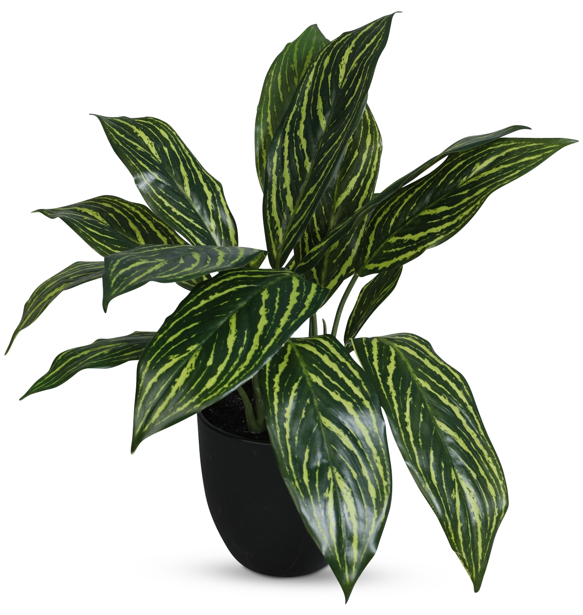 En kunstig Philodendron komplett i en svart plastkrukke. Totalhøyde 35 cm høy.