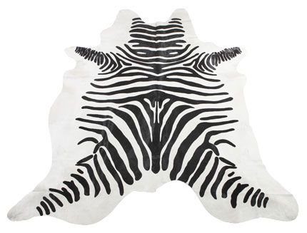 Sebraskinn, nei det er ikke riktig, men det er et ekte kuskinn fra Brasil med trykket sebramønster. Hvert skinn er unikt i både størrelse, farge og mønster. De er lett å vedlikeholde, slitesterke og passer perfekt under en sofagruppe eller spisegruppe.