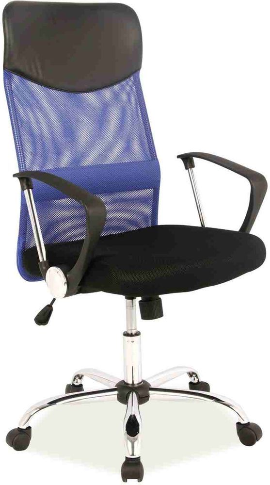En fin kontorstol med moderne design. Basen er laget av forkrommet metall og setet er dekket med et behagelig nettingstoff. Ryggstøtten er laget av en blanding av mesh-stoff og syntetisk skinn. Stolen har vippefunksjon og høyden justeres enkelt ved hjelp av spaken under setet. Stolen er også lett å flytte takket være hjulene på stjernebasen.