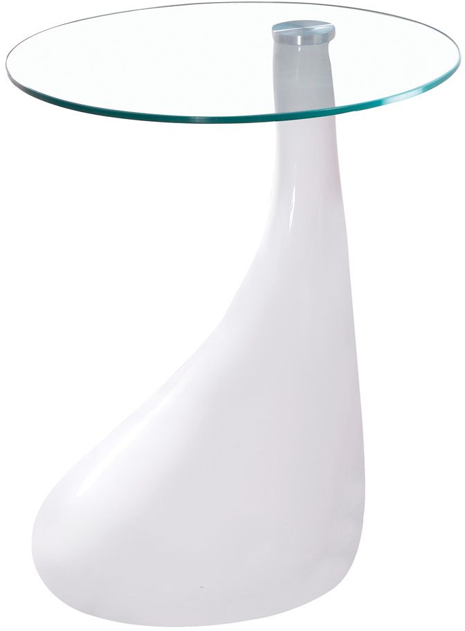 Et pent lampebord med et moderne design. Underdelen er laget av plast og bordplaten er av herdet glass.