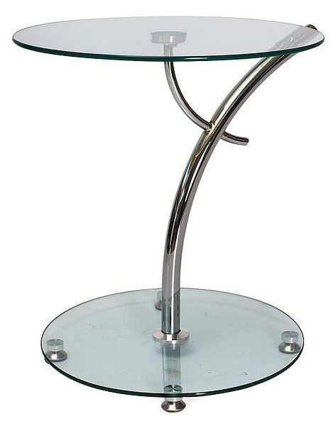 Et koselig lampebord med et moderne design. Stammen er laget av forkrommet metall, og foten samt bordplaten er av svært slitesterkt herdet glass.