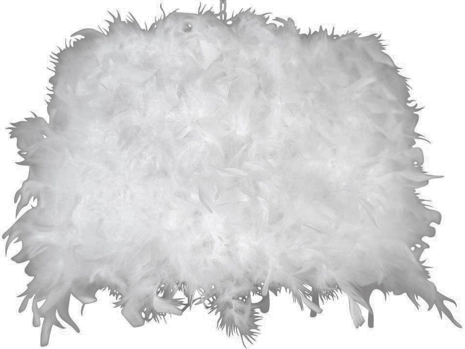 Rund Lampeskjerm i hvite fjær. Passer til både E14 og E27 sokkel.