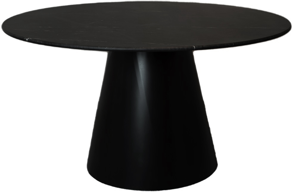 Lance er et eksklusivt marmorbord med svart matt marmorskive og en ramme i svartlakkert metall. Bordplaten er 137 cm i diameter.