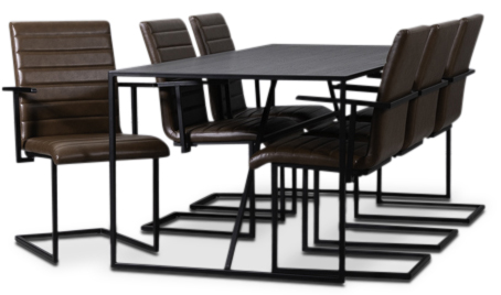 Lazio spisegruppe 195 cm bord med 6 st Lazio stoler - Vintage/Svart