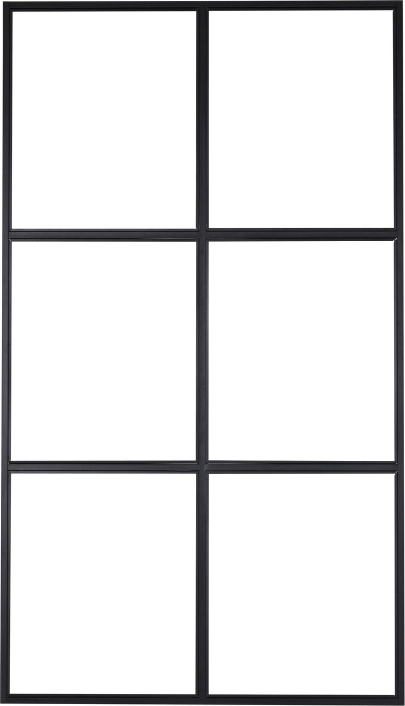 Bruk som en stilig detalj i hjemmet eller som en smart romdeler. Industriveggen er utført i pulverlakkert aluminium med tilhørende glasspartier. Veggen er solid og enkel å montere. For innendørs bruk. Mål: 120x210 cm