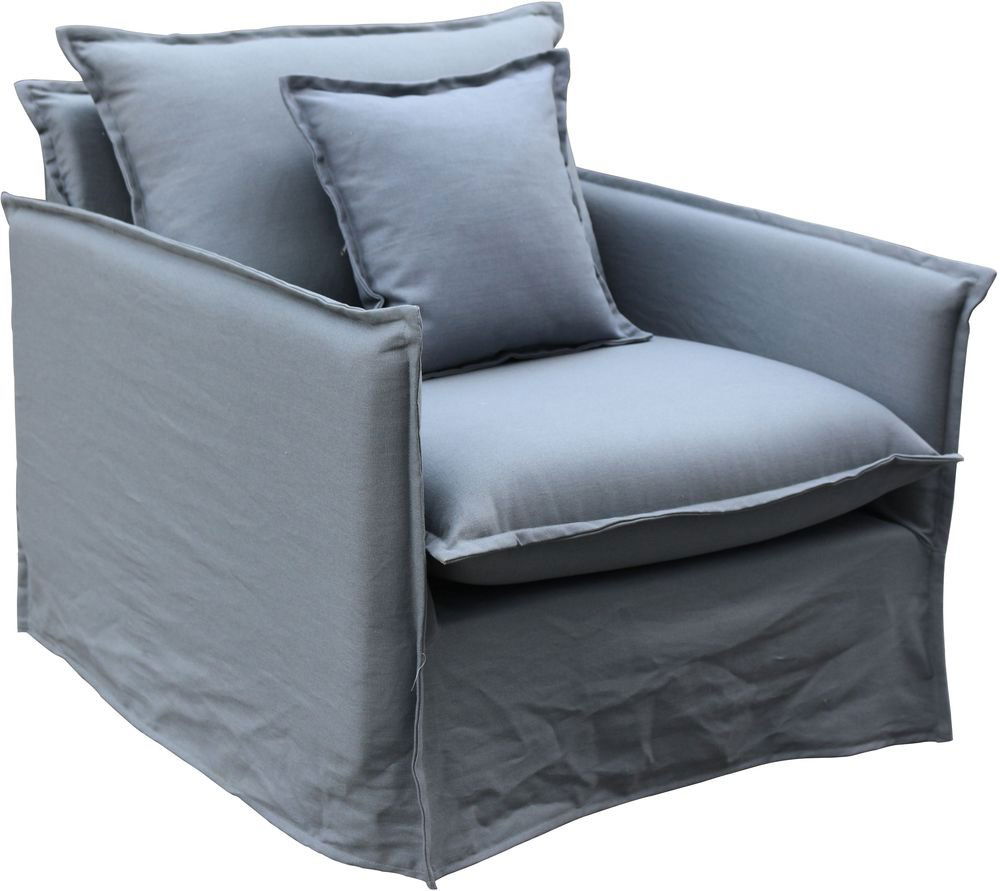 Lenestol Delfi er kledd med et grått fiberstoff og er skumstoppet for god komfort. Stamme av massivt tre.