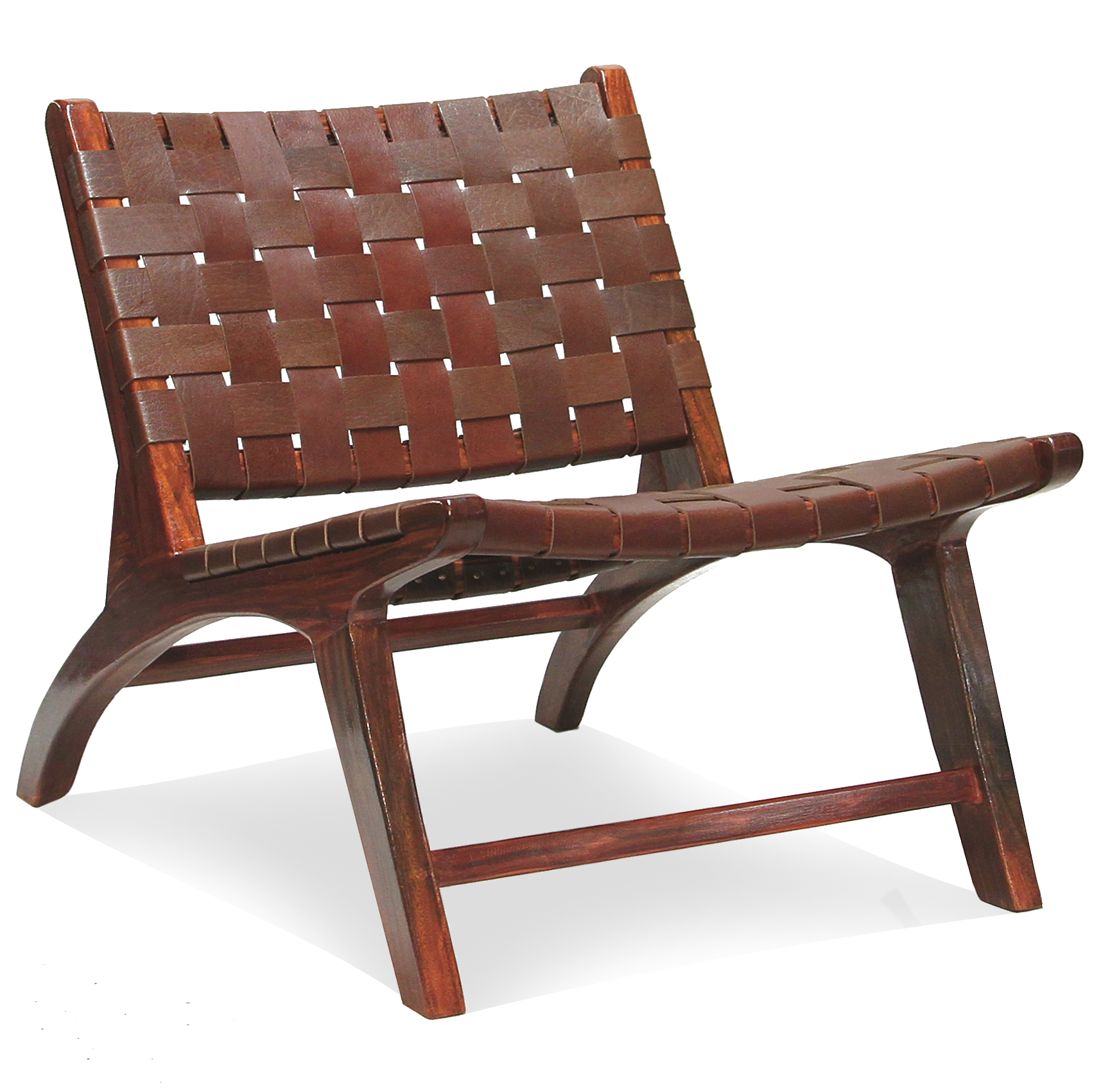 Porto lenestol i massiv teak med sete og rygg i cognacfarget skinn. Lenestolen tilhører vår populære serie Porto.