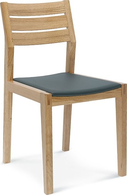 Spisestol i bøk eller eik med valgfri farge på ramme og trekk. Leveres montert.