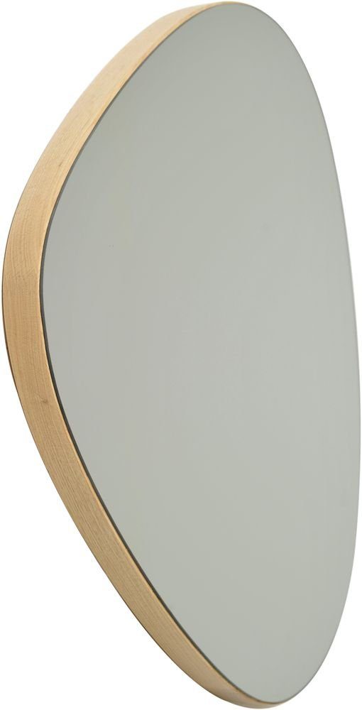 Rundt speil med ramme av eik. Finnes også i rund form.