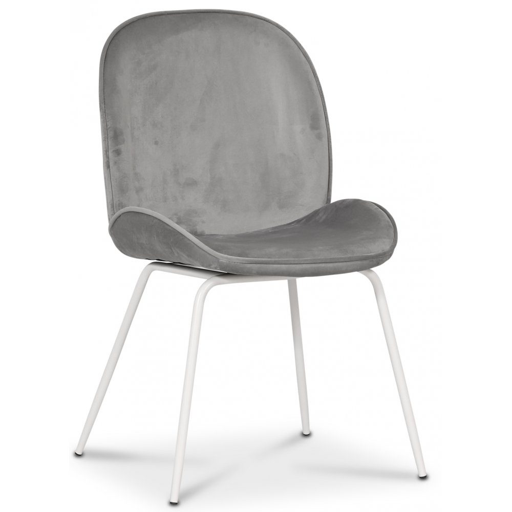 Leo er en moderne stilren stol i grå fløyel med hvite metallben.