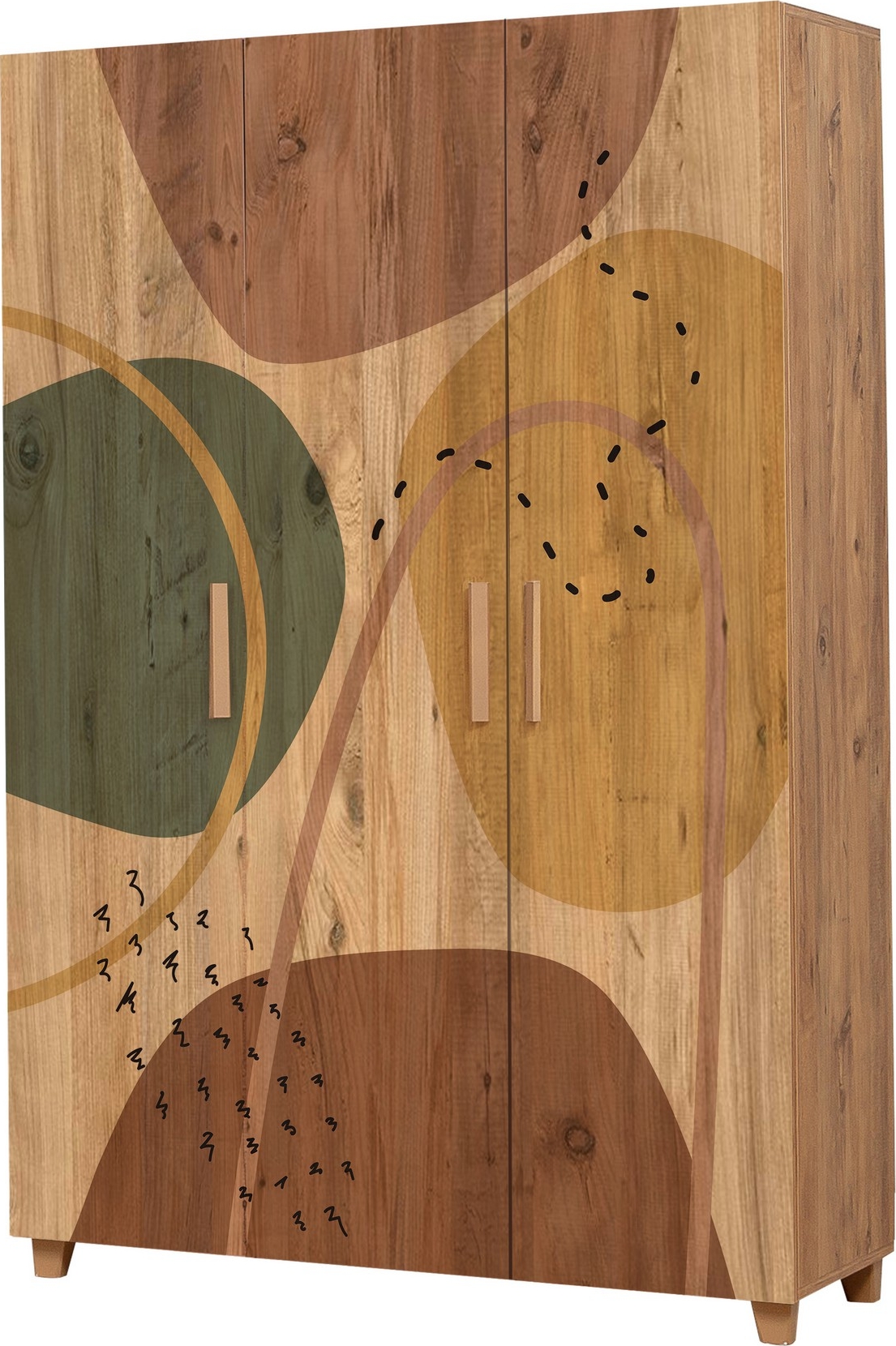 Tregarderobe med plastben og PVC-kant.