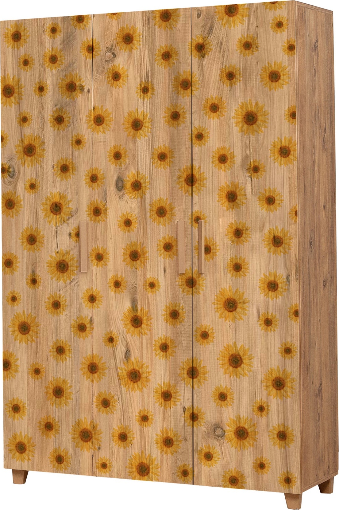 Tregarderobe med plastben og PVC-kant.