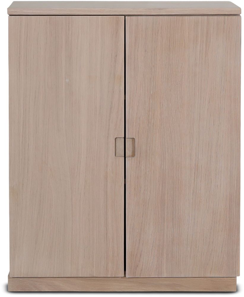 Level er en serie skap og sideboards som er beiset i svart, eik eller whitewash med dører i forskjellige utførelser. Laget av MDF og eikefinér, stamme av solid eik. Dørene er beiset i samme farge som skapet. Velg utførelsen som passer ditt hjem. To justerbare hyller følger med i hvert skap.