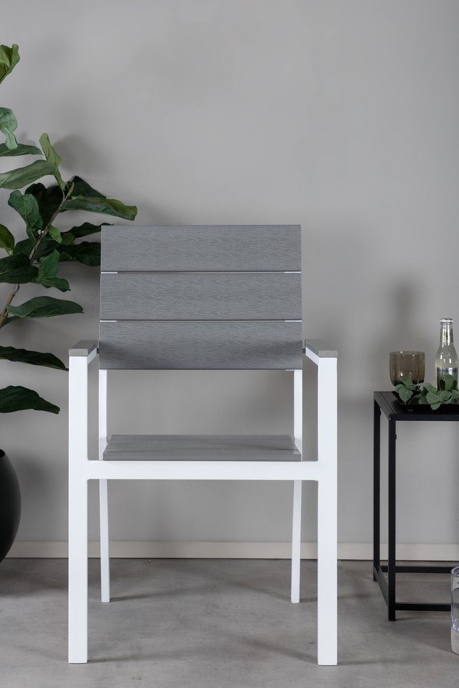 Skap et moderne blikkfang med Levels, en praktisk rammestol i hvit aluminium med grått sete og rygg i smakfullt tre. Stolen kan stables, for praktisk oppbevaring. Her får du en robust stol med stilig design og rette nordiske former som vil gi deg mange deilige sommermiddager fremover. Stolen kan stables. Pleieråd: Materialet er designet for bruk utendørs da det er værbestandig og motstår både fukt og mugg. Aintwood er derfor et optimalt materiale for utemøbler. Unngå å skade bordet ved å bruke coasters og ikke plassere varme gjenstander direkte på overflaten.